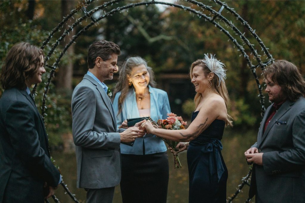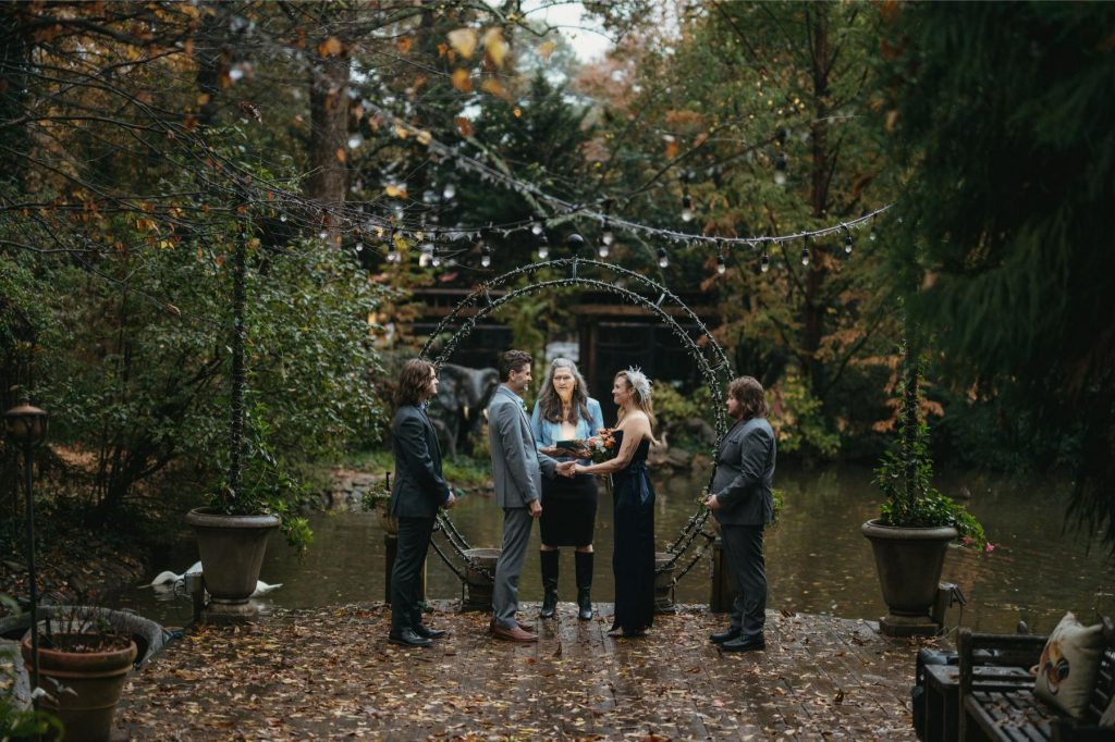 We decided to not wait too long to make things official and planned a small intimate evening with the kids, Emmett and Evan, our officiant and friend, Sheri, and photographer and friend, Mary Claire in attendance. Oh, and also about 120 birds on the property. **SPECIAL PRIZE IF ANYONE UNKNOWINGLY ENDS UP BOOKING THEIR STAY AT THIS AMAZING AIR BNB VENUE.β We were married on same the date as our first date, 11/11 so we could always celebrate each other and our lives on this auspicious day. Our ceremony overlooked a peaceful pond and the music was the sounds of the serene location. Hereβs a collection of some of the moments captured by the wonderful Mary Claire π